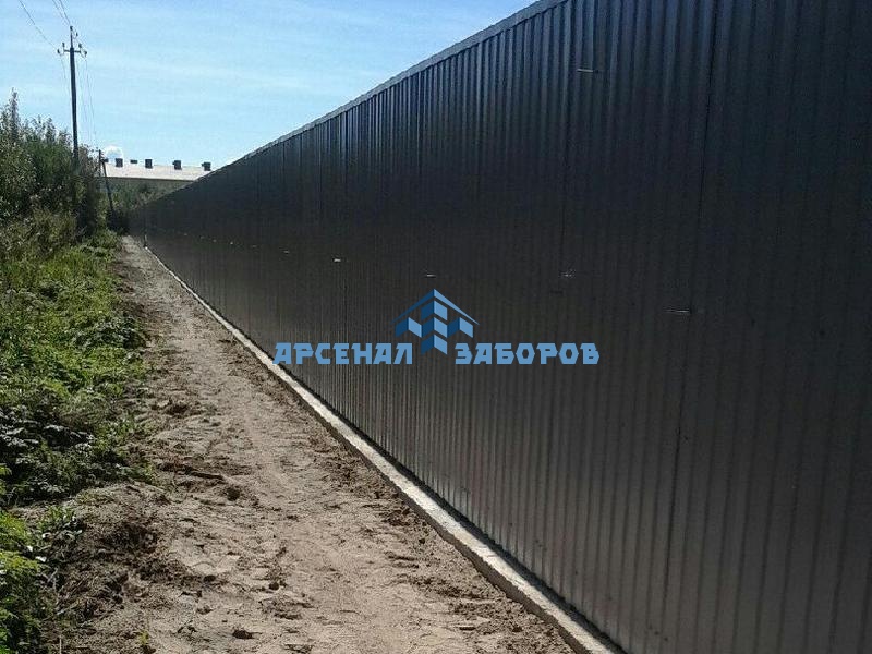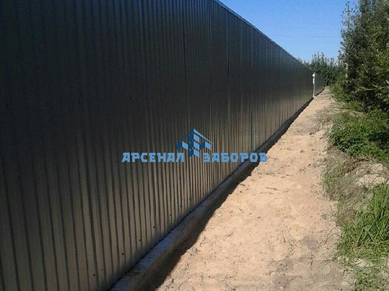 Конструкция забора из профлиста на ленточном фундаменте и с кирпичными столбами