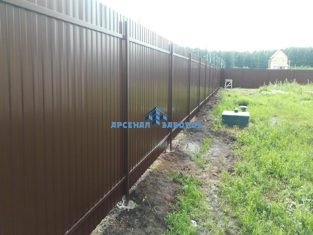 Конструкция забора из профлиста с забивными столбами