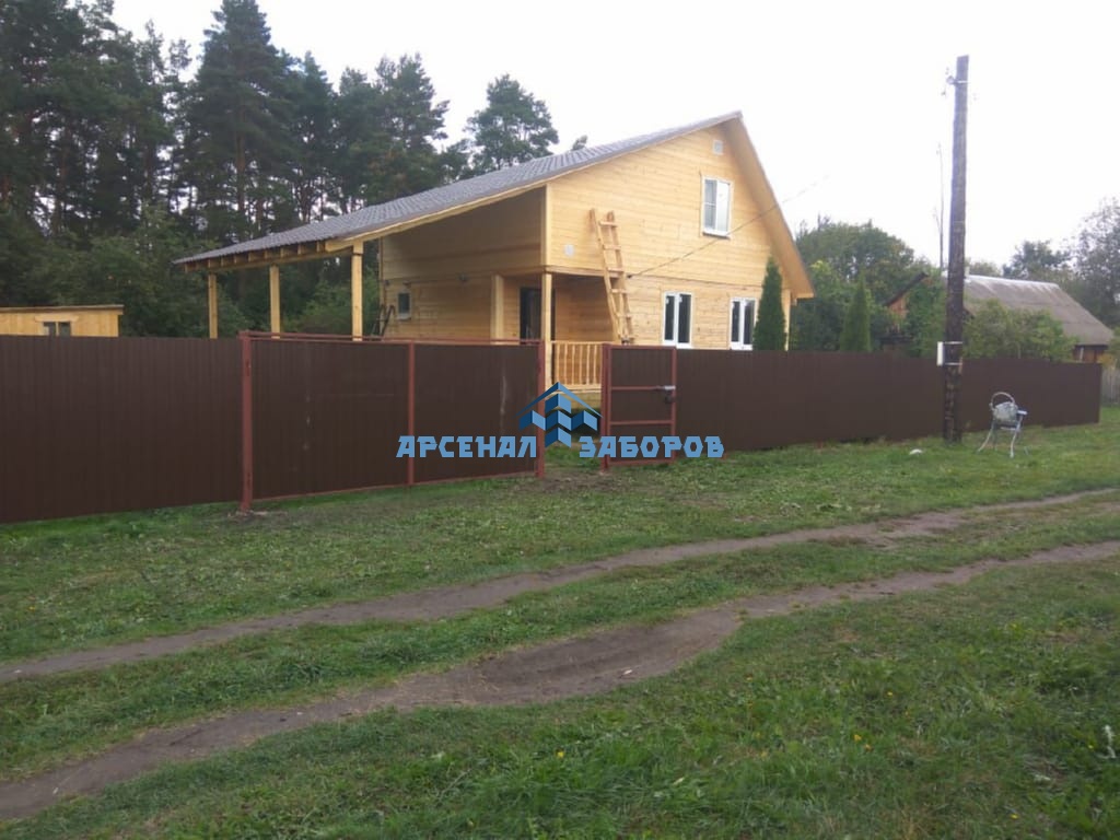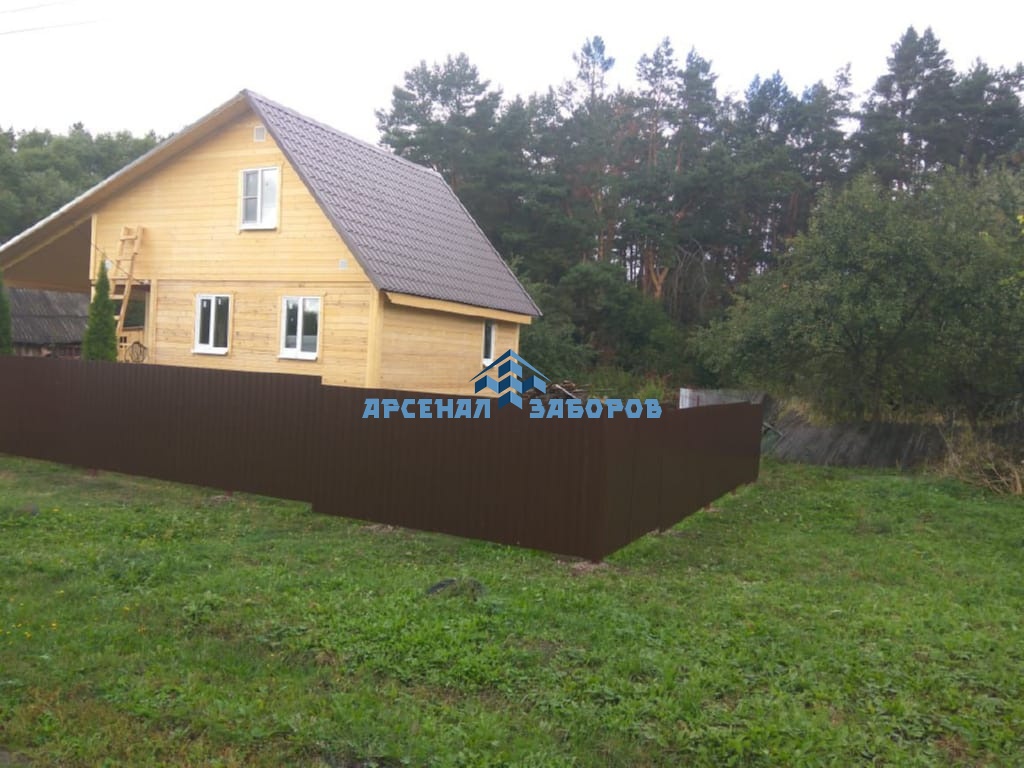 Конструкция забора из профлиста на ленточном фундаменте и с кирпичными столбами