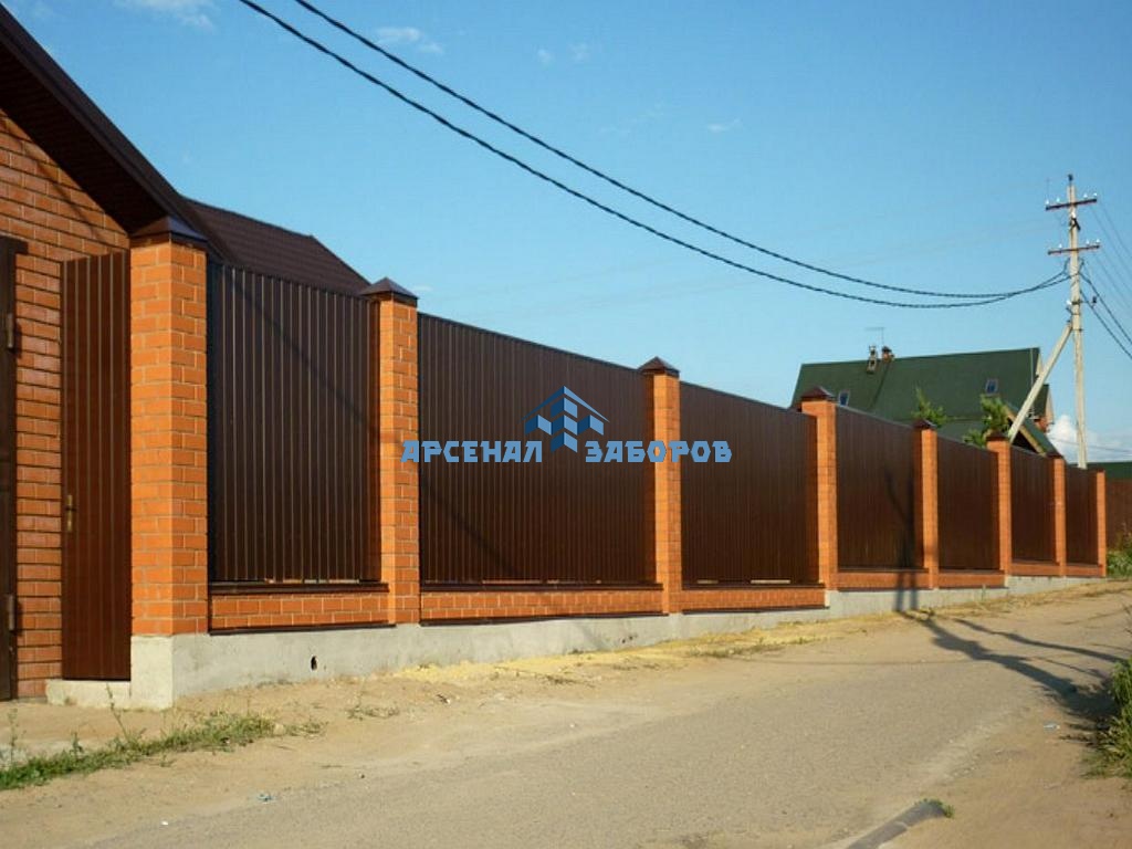 Конструкция забора из профлиста на ленточном фундаменте и с кирпичными столбами