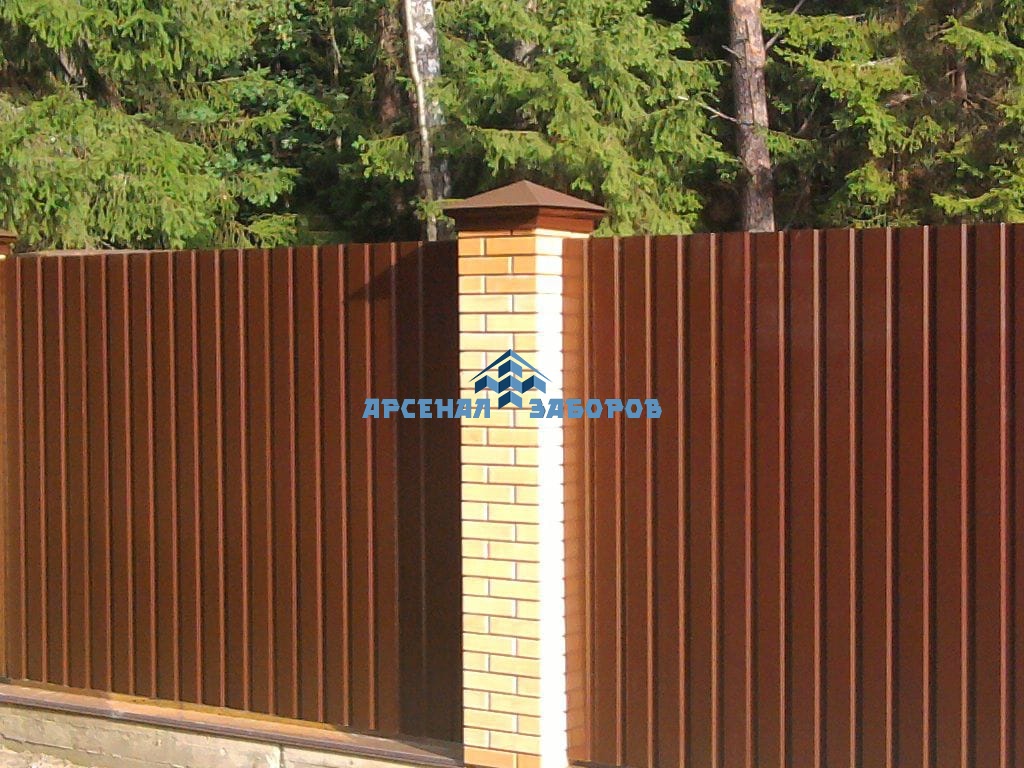 Конструкция забора из профлиста на ленточном фундаменте и с кирпичными столбами