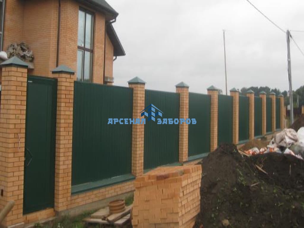Конструкция забора из профлиста на ленточном фундаменте и с кирпичными столбами