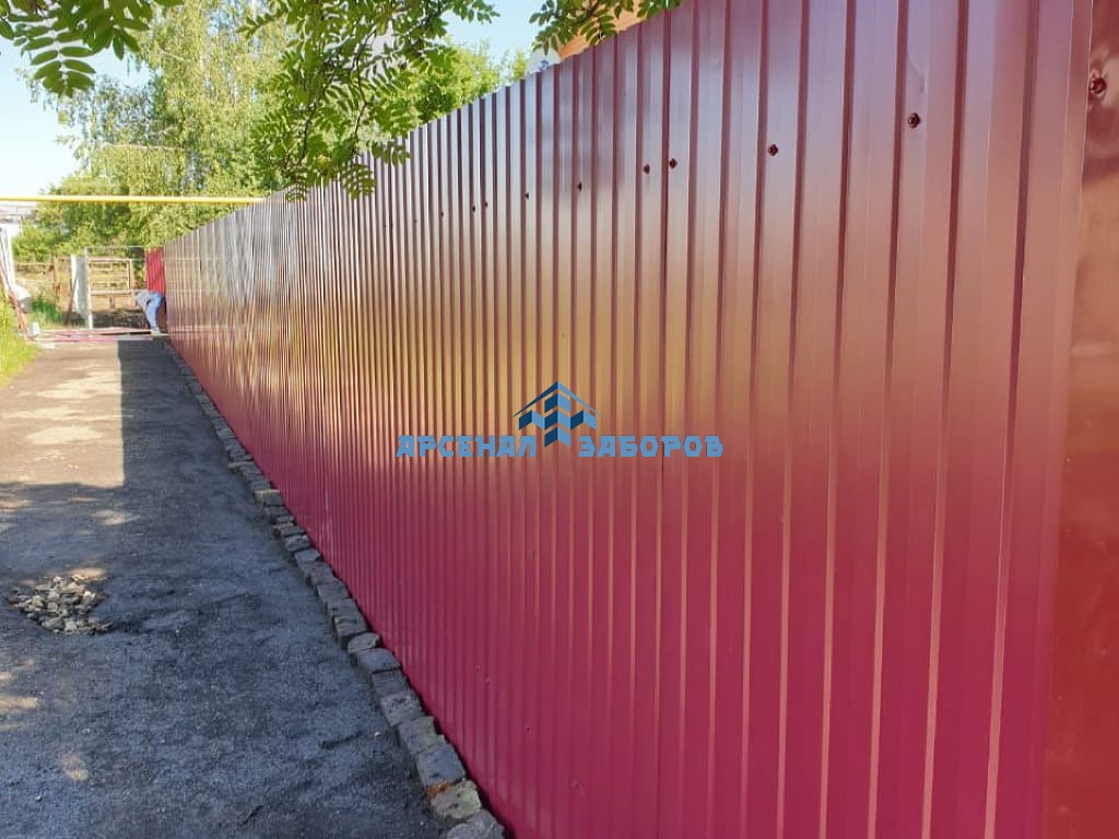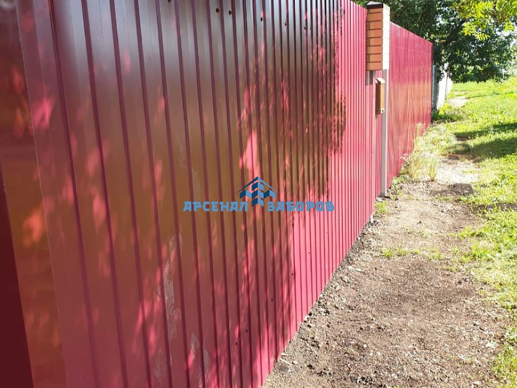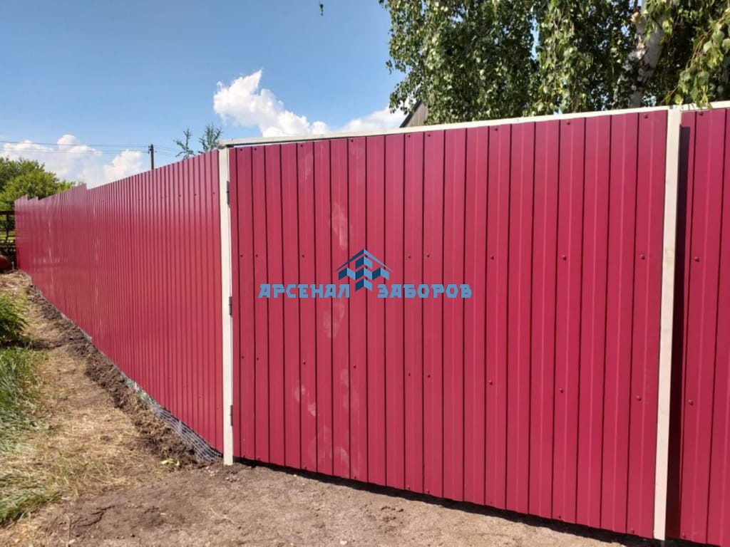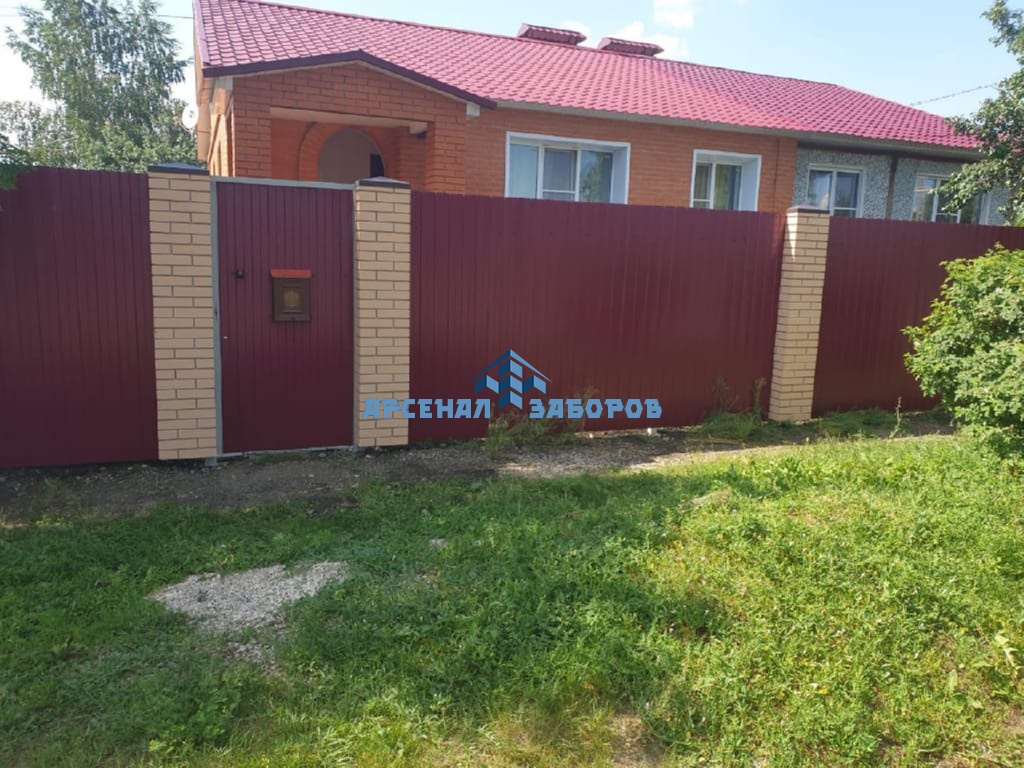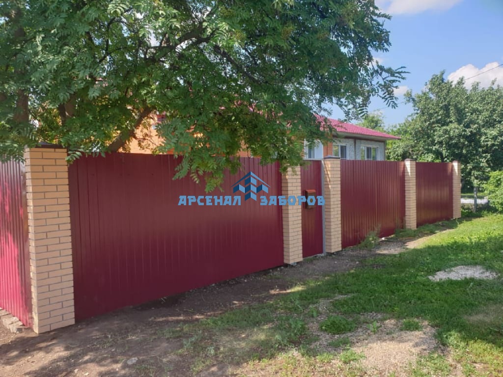 Конструкция забора из профлиста на ленточном фундаменте и с кирпичными столбами