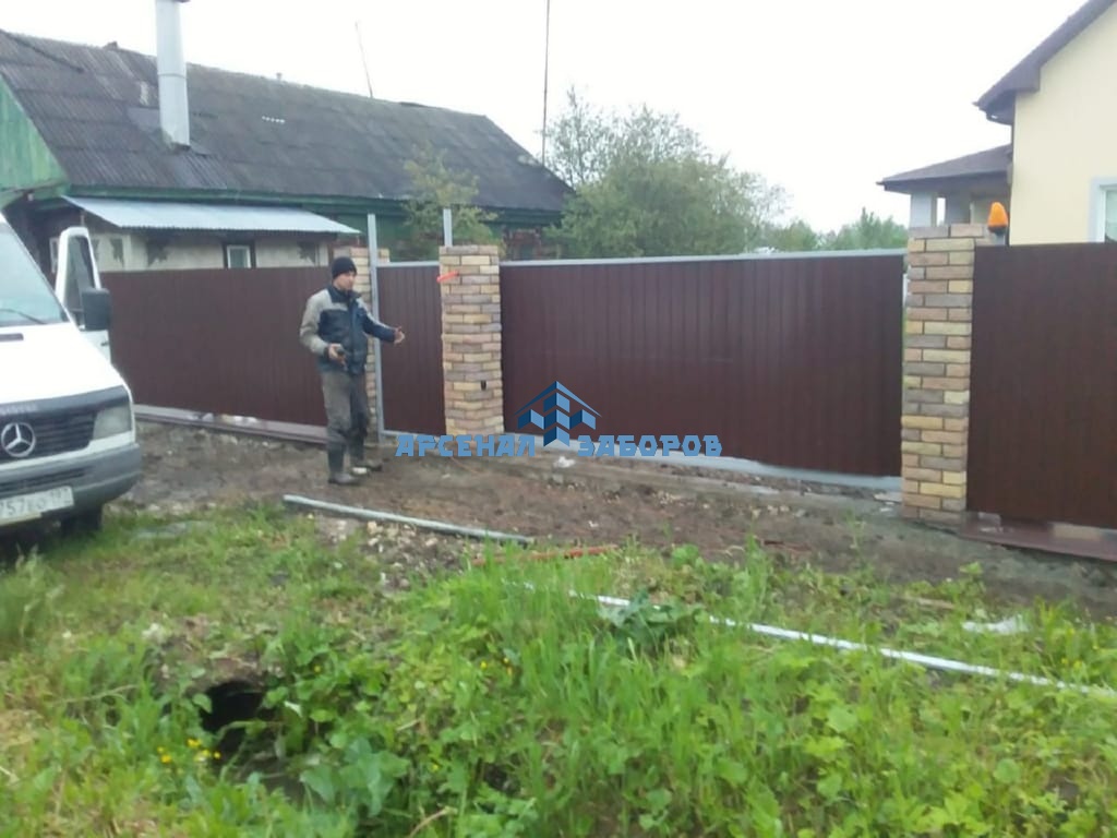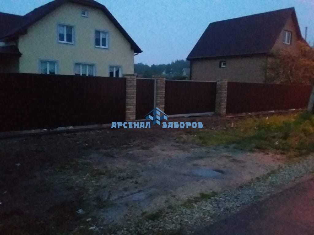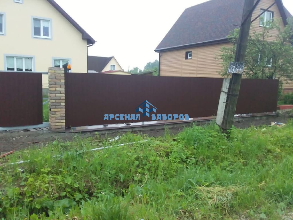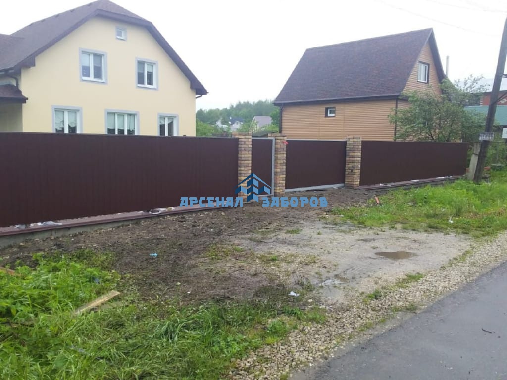 Конструкция забора из профлиста на ленточном фундаменте и с кирпичными столбами