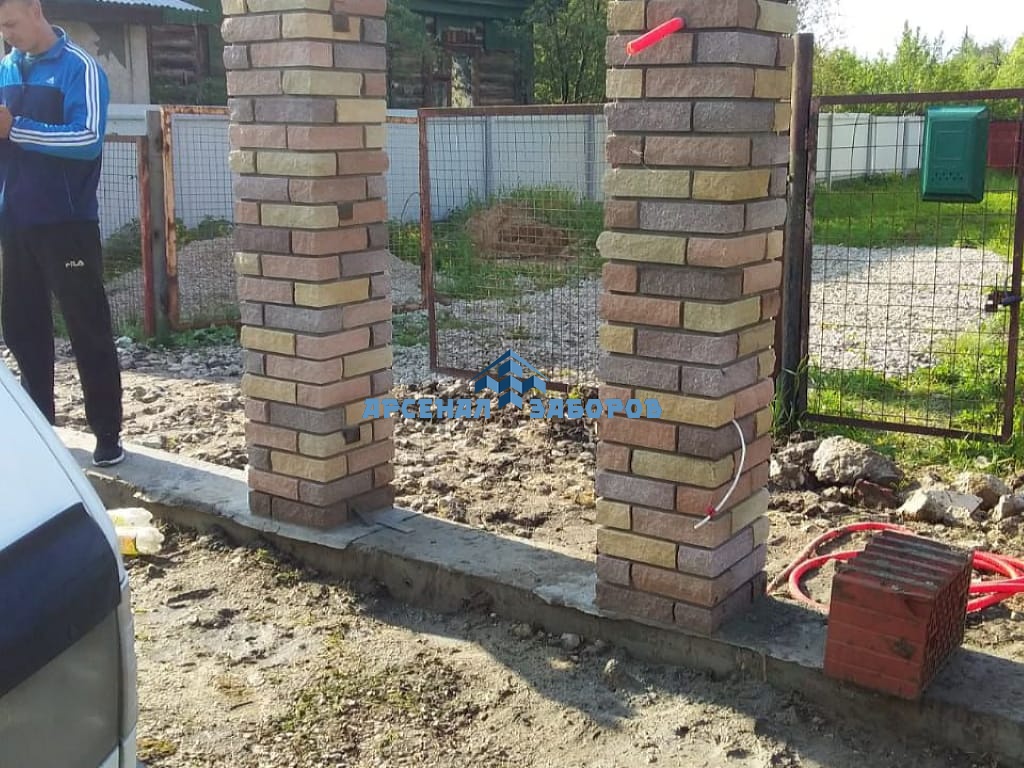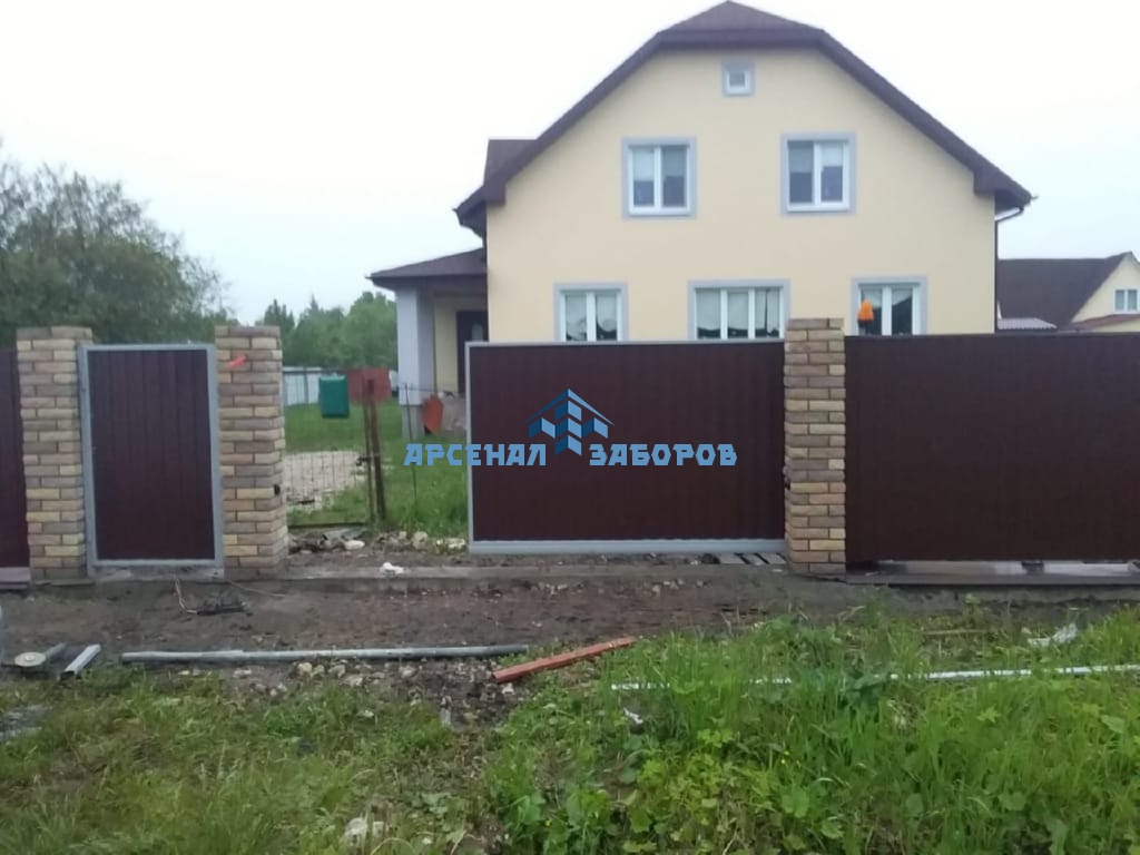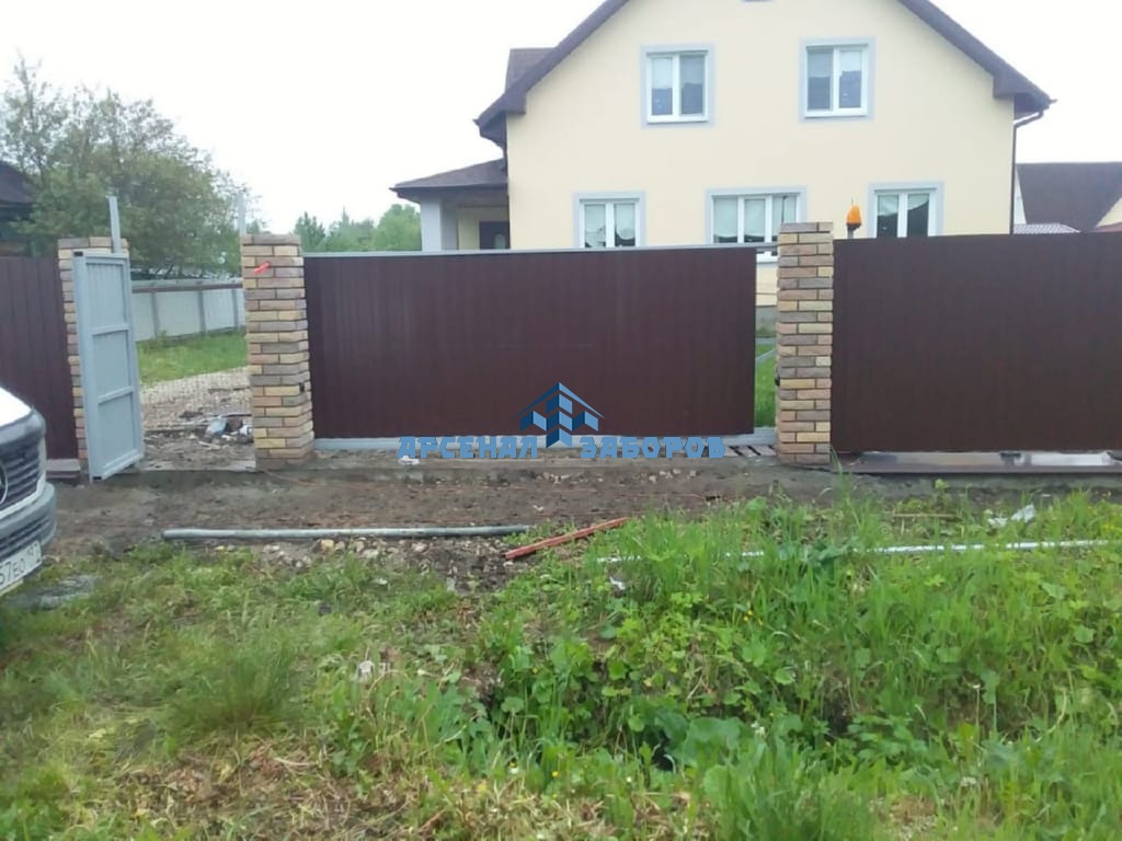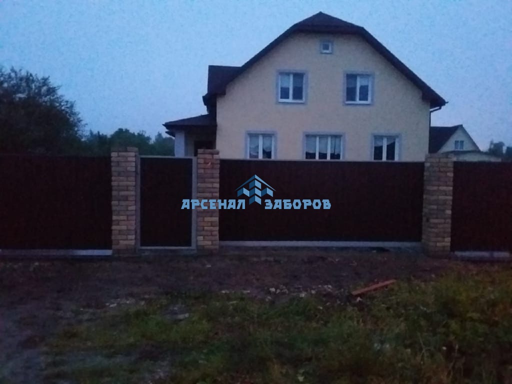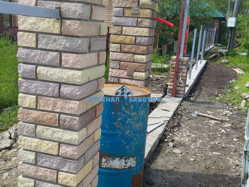 Конструкция забора из профлиста на ленточном фундаменте и с кирпичными столбами