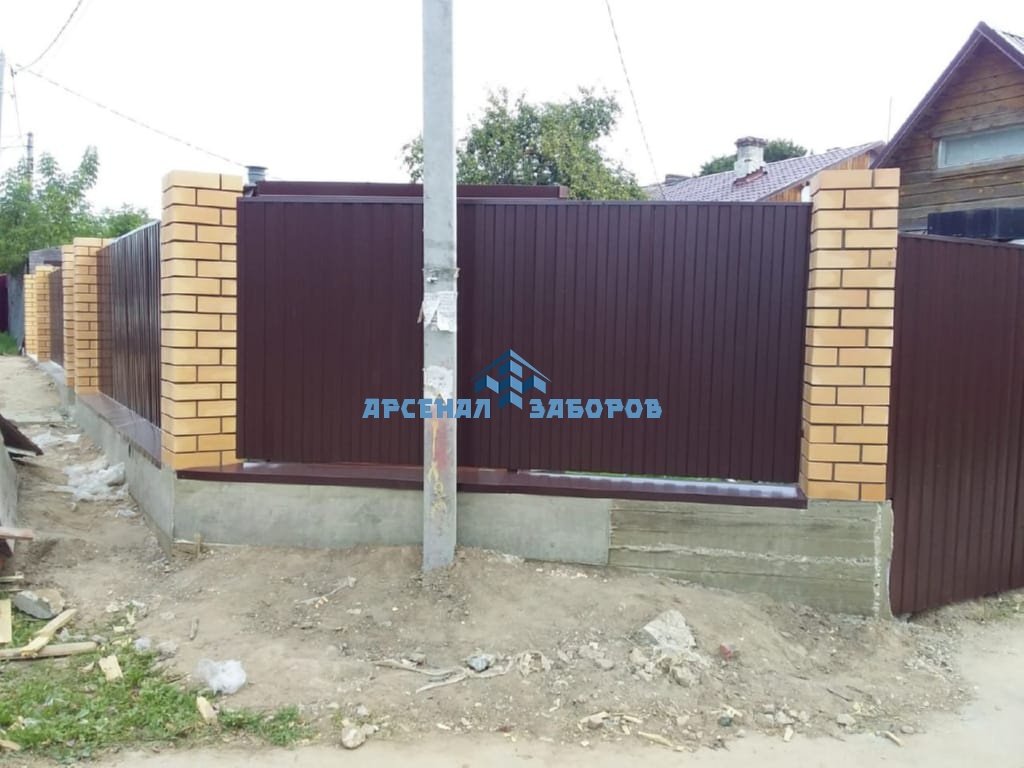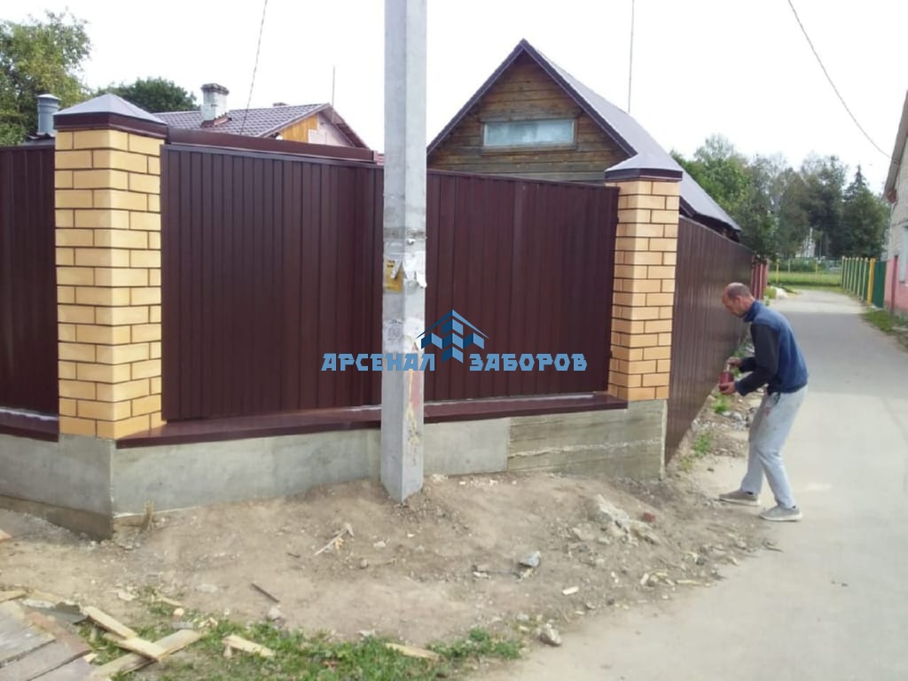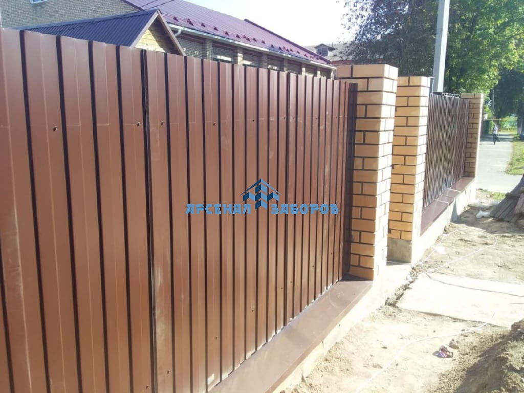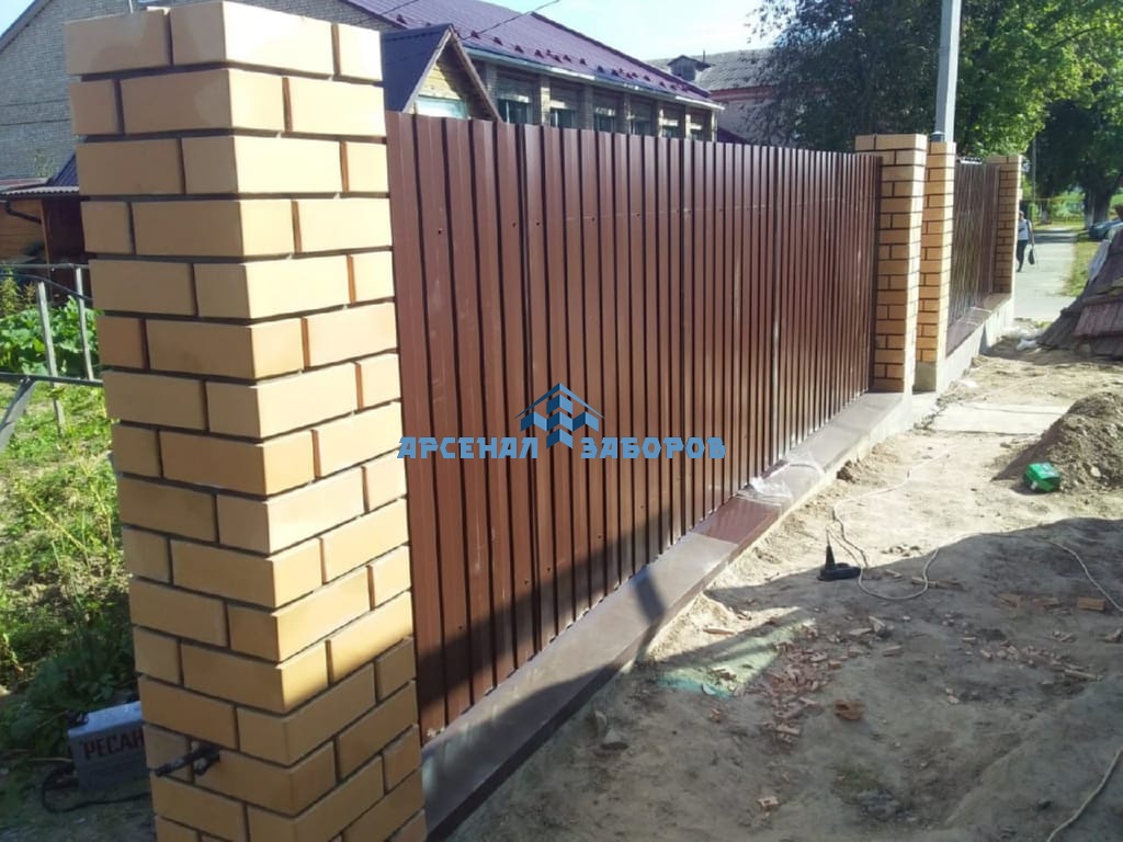 • Конструкция забора из профлиста на ленточном фундаменте и с кирпичными столбами
