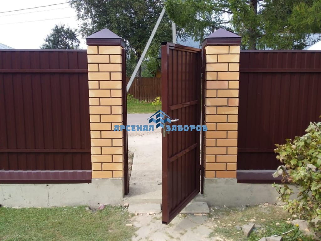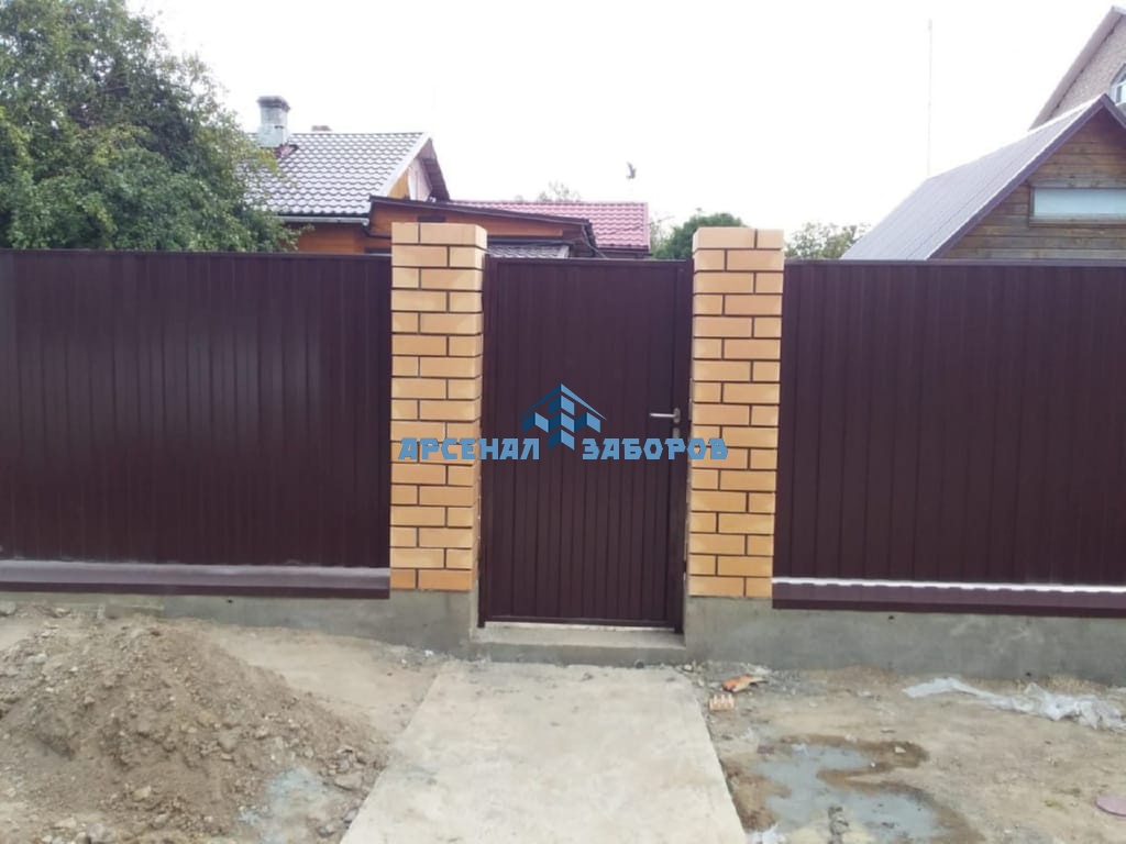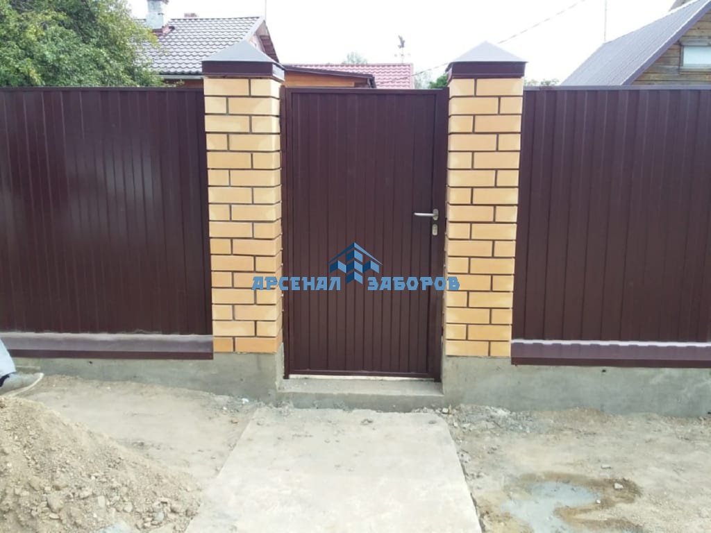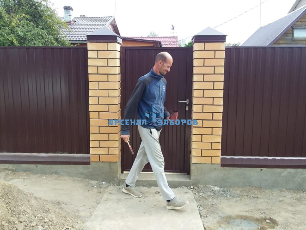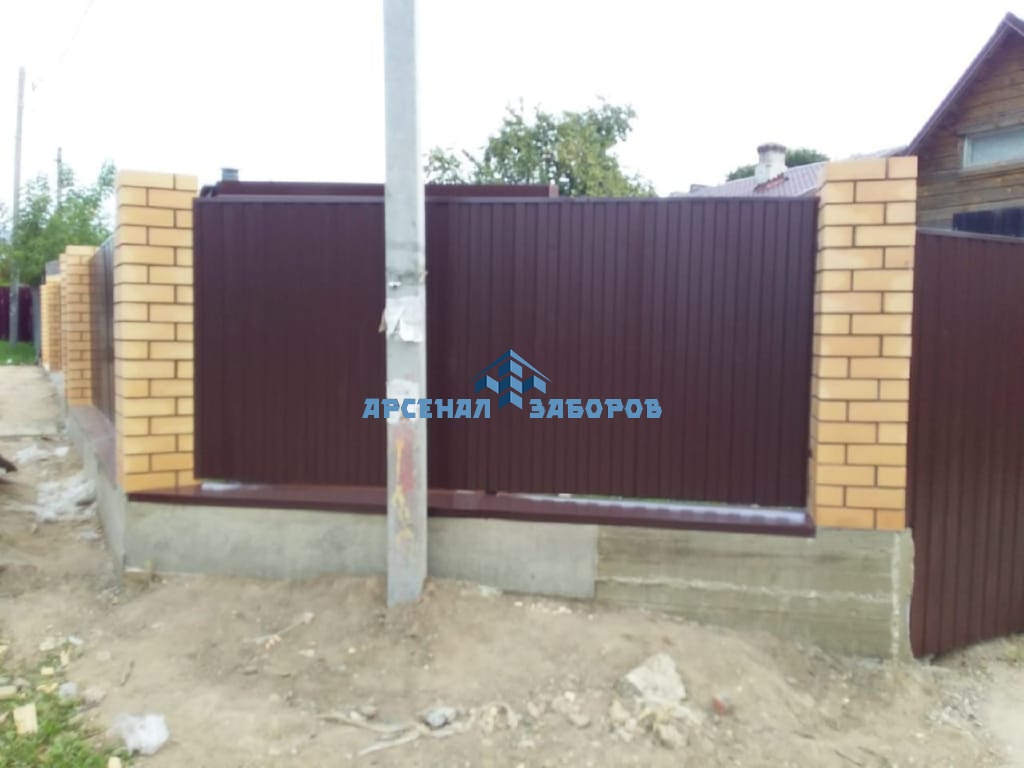 • Конструкция забора из профлиста на ленточном фундаменте и с кирпичными столбами