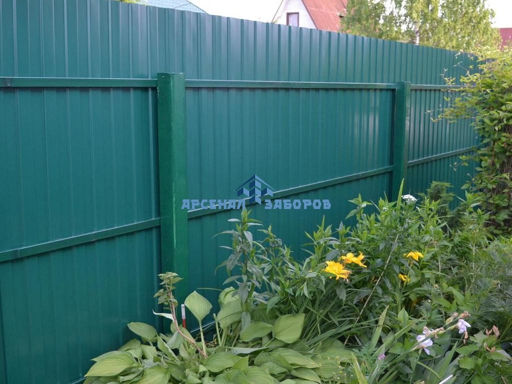Конструкция забора из профлиста на ленточном фундаменте и с кирпичными столбами