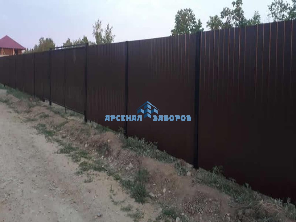 Конструкция забора из профлиста на ленточном фундаменте и с кирпичными столбами