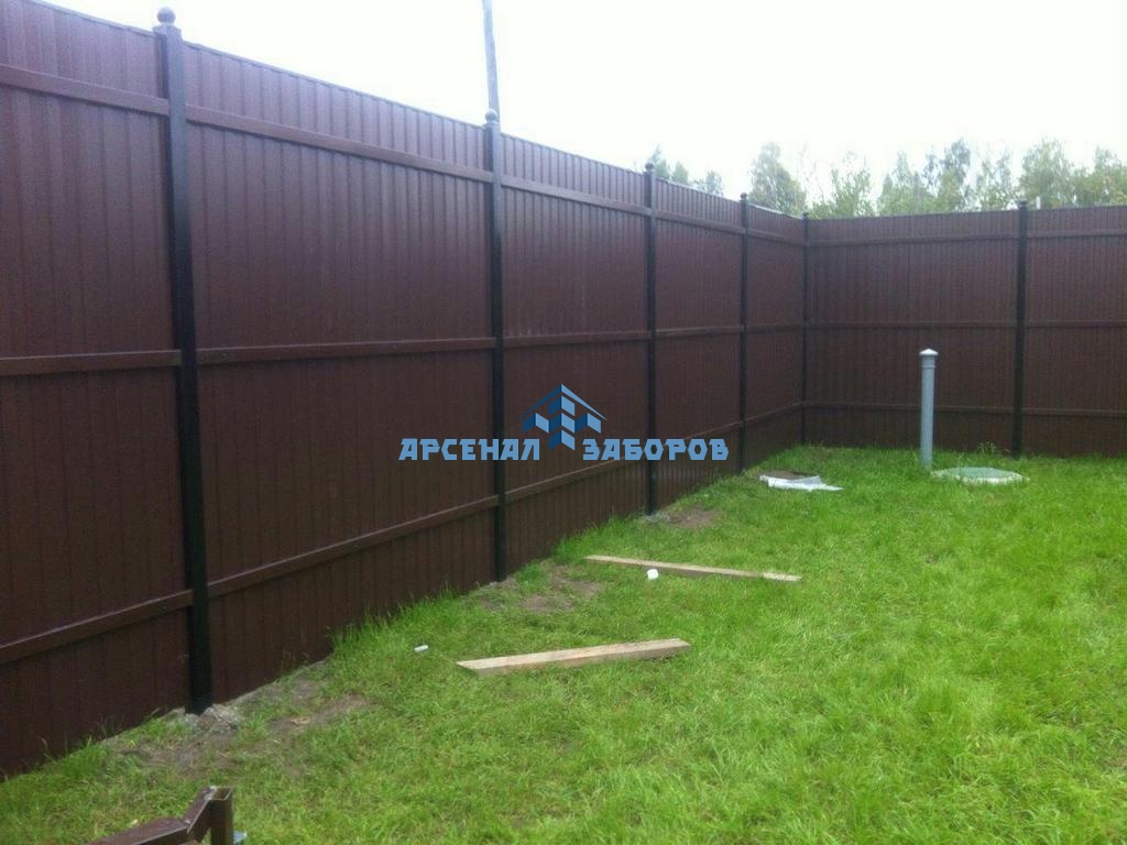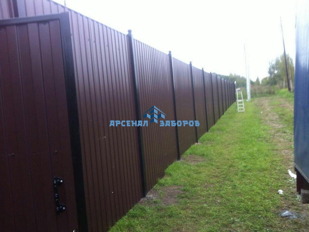 Конструкция забора из профлиста на ленточном фундаменте и с кирпичными столбами