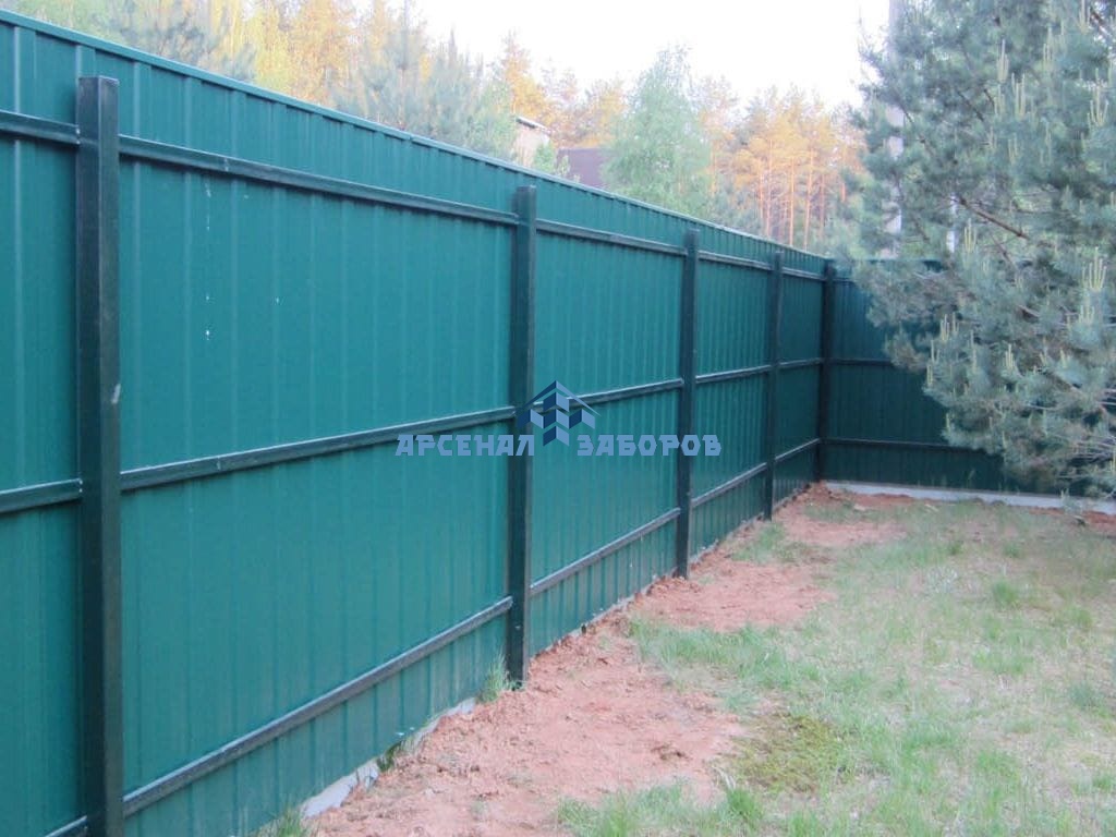 Конструкция забора из профлиста на ленточном фундаменте и с кирпичными столбами