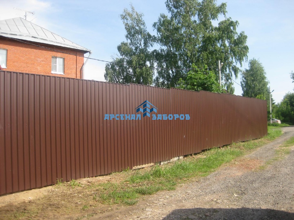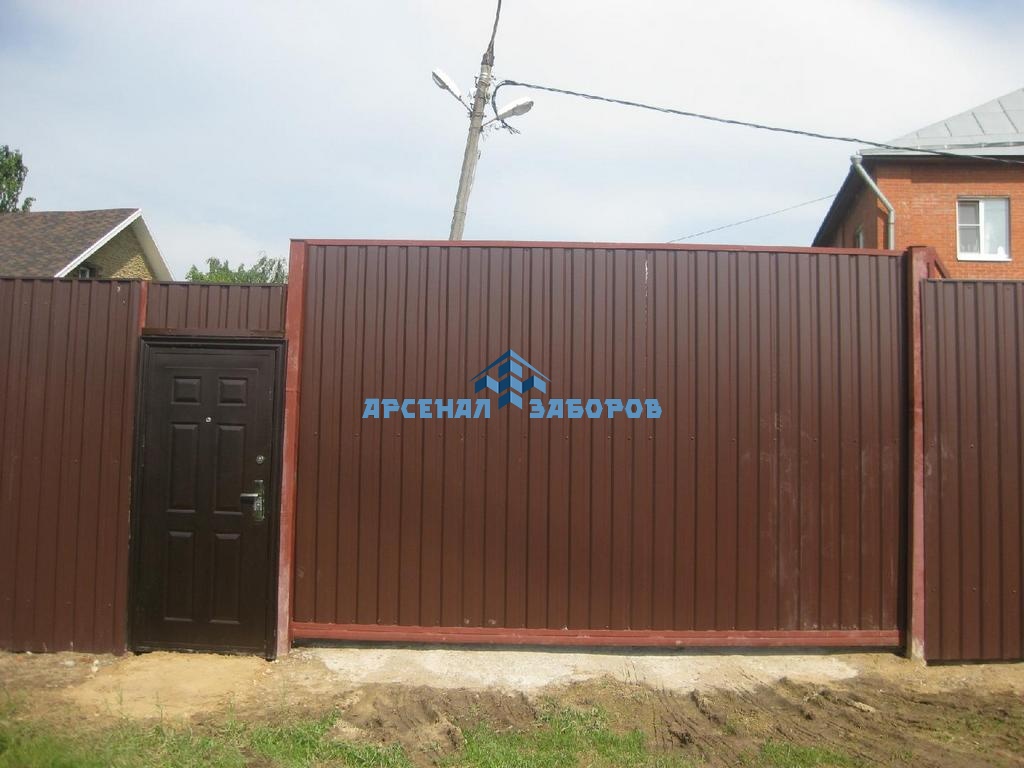 Конструкция забора из профлиста на ленточном фундаменте и с кирпичными столбами