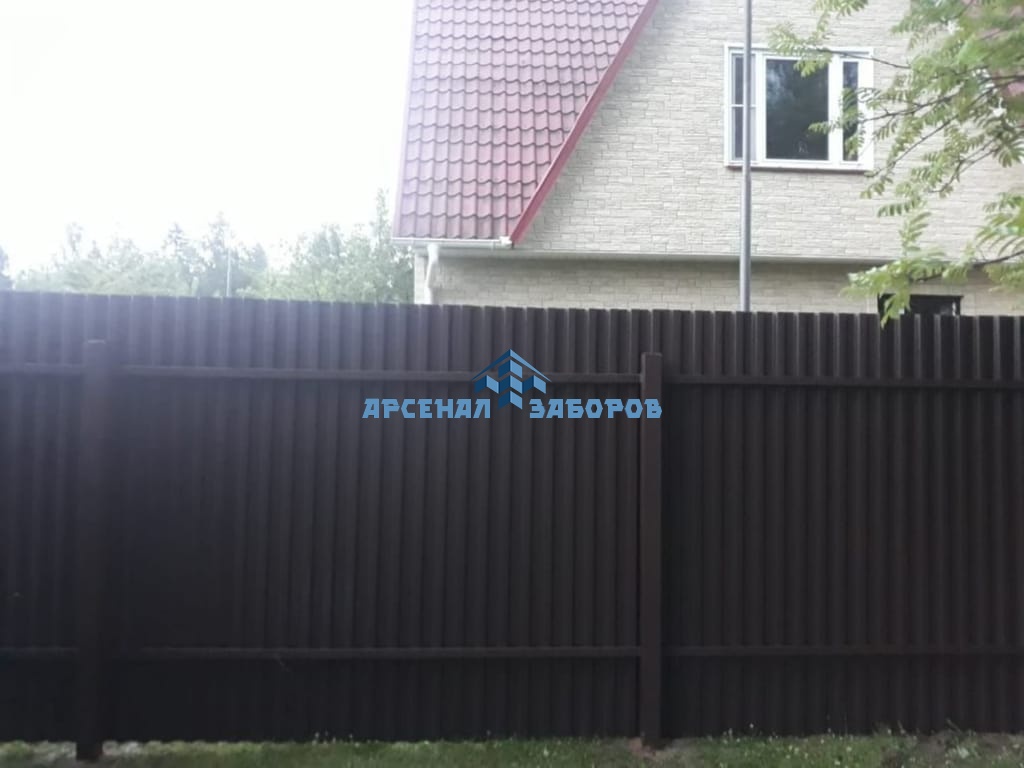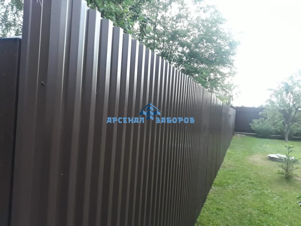 Конструкция забора из профлиста на ленточном фундаменте и с кирпичными столбами