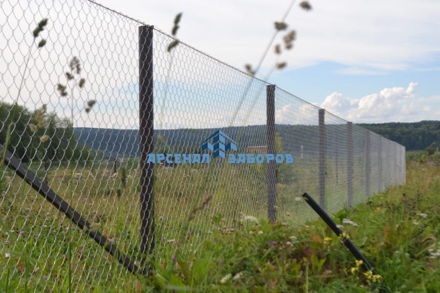 Конструкция забора из сетки-рабицы с протяжкой арматурой
