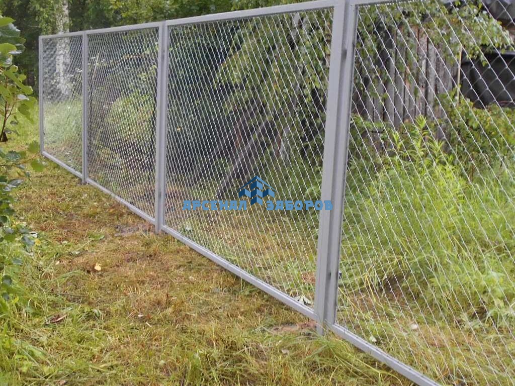 Конструкция забора из сетки-рабицы с протяжкой арматурой