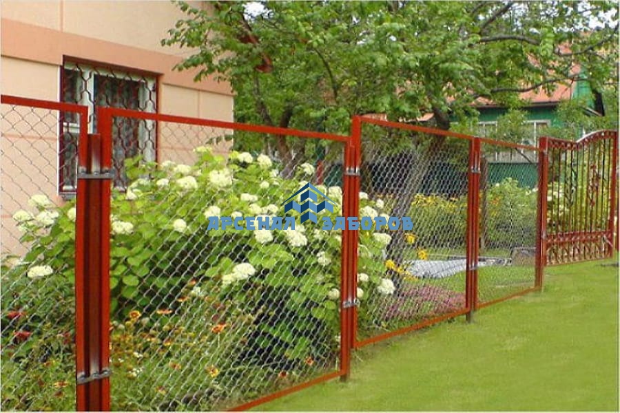 Конструкция забора из сетки-рабицы с протяжкой арматурой